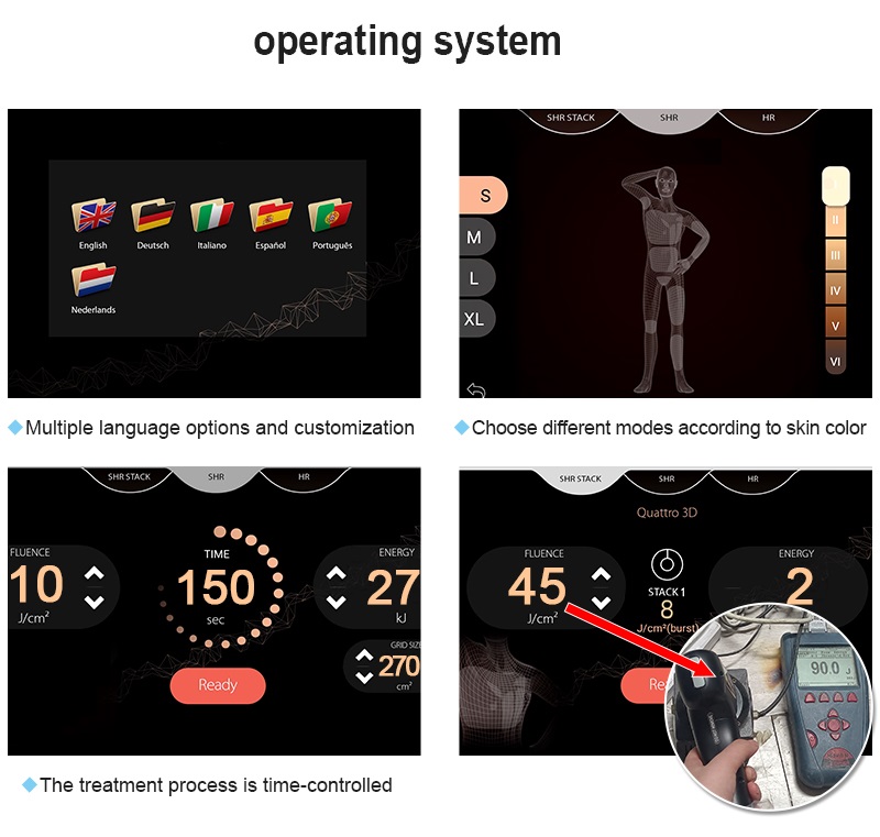 Our machine uses the latest 755 808 1064 nm laser hair removal technology. Compared to other traditional hair removal methods, this technology is easy to operate, has a controlled level of pain, and provides significant hair removal results. It’s one of the most popular hair removal methods on the market .