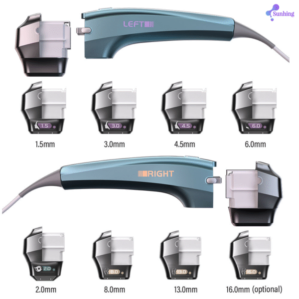 1.Unique instrument and handle appearance original patent design. High-frequency brushless motor folding linkage work, efficient operation, to ensure that the operation enjoys silky smooth. 2.Three groups of power management module 1280 watts of high-power output, so that ultra sound in a very short period of time to effectively reduce the operating area energy density, so that the heat effect is more uniform and gentle. 3.2 M / 4 M / 5.5 M three probe frequency and seven probe models on the point, surface, line and skin layer by layer, so that the energy in a very short period of time to release the extreme peak value of energy on the point, surface, line and skin layer by layer, the limit to shorten the operating time. 4.The new dynamic intelligent UI interface design, dual handle at the same time synergistic operation, so as to realize the use of 1 +1 greater than 2 experience. 5.NP mode pulse energy output increased to 0.38 ms, linear mode breakthrough 618 points. 6.The left and right handles can choose point and NP linear two modes to switch each other synchronized output, to the operator to bring more simple, easy, pleasant experience. 7.13.3 inch smart screen, User-friendly operation, making the operation easy and fast.